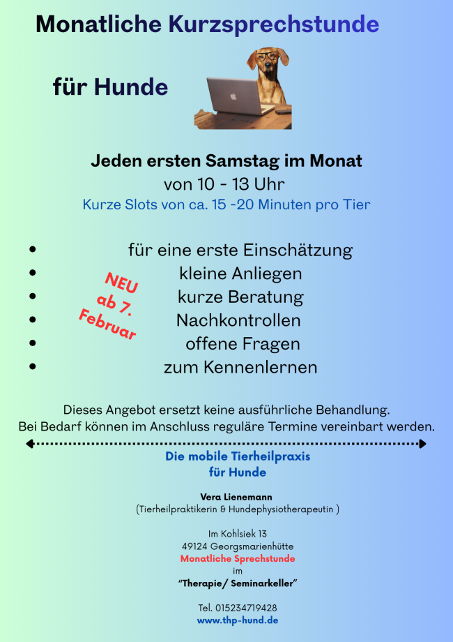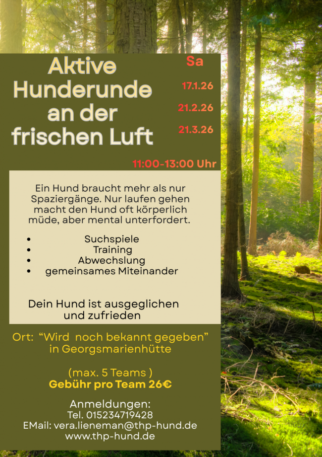 Bei Interesse gerne eine E-Mail an: vera.lienemann@thp-hund.de