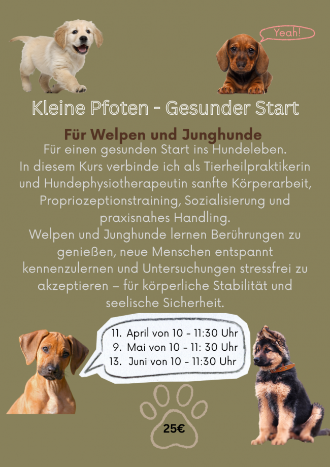 - Gerne können auch Hundehalter mit erkrankten Hunden teilnehmen, die zusätzlich einen Einzeltermin mit mir vereinbaren können. Wo wir speziell auf die Erkrankung eingehen können.